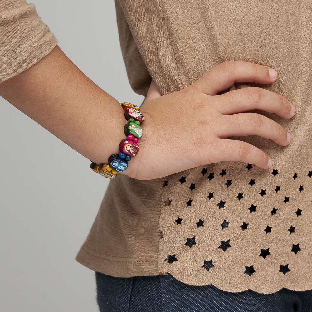 Pulseira Infantil Colorida, produzida com materiais de qualidade. Peças em madeira colorida, e imagens resinadas. Tudo voltado às crianças! Produto 100% nacional, confeccionado com amor!
